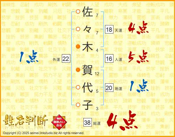 佐々木賀代子さんの総運は38画の4点!
