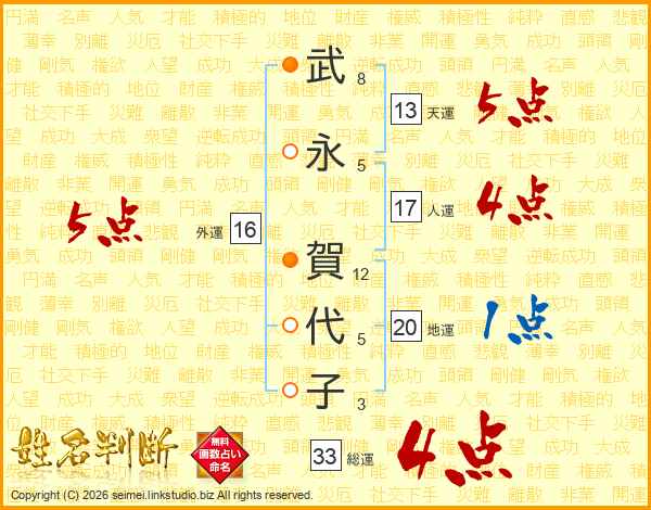 武永賀代子さんの総運は33画の4点!