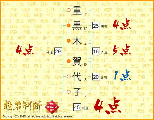 重黒木賀代子さんの総運は45画の4点!
