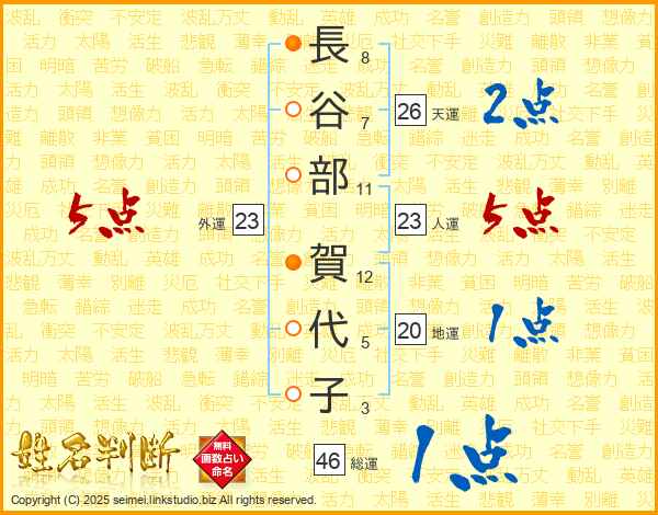 長谷部賀代子さんの総運は46画の1点!