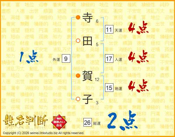 寺田賀子さんの総運は26画の2点!
