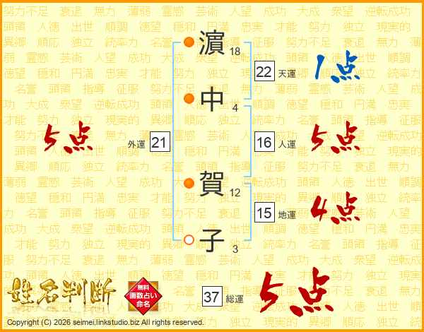 濵中賀子さんの総運は37画の5点!