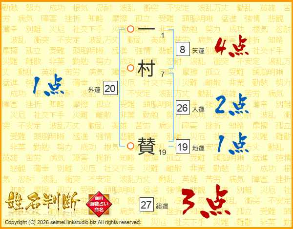 一村賛さんの総運は27画の3点!