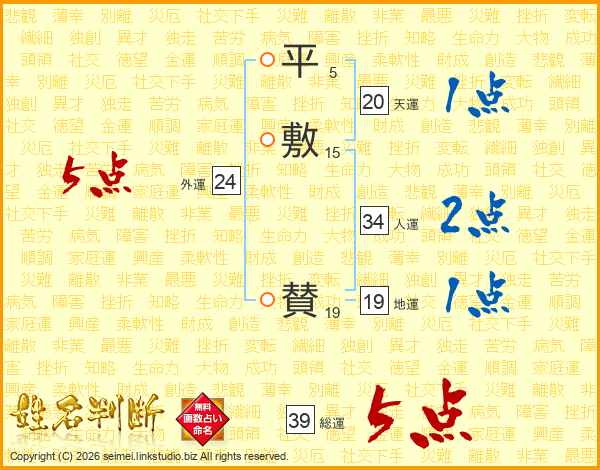 平敷賛さんの総運は39画の5点!