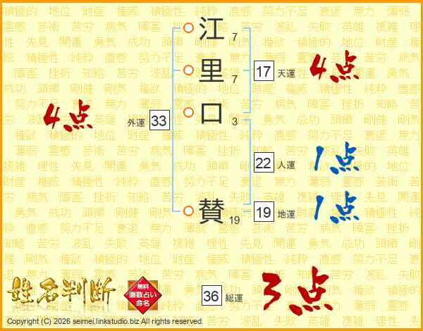 江里口賛さんの天運は17画の4点!