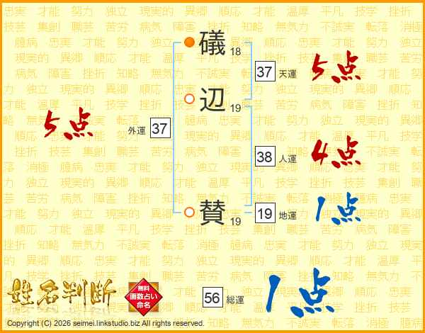 礒辺賛さんの天運は37画の5点!