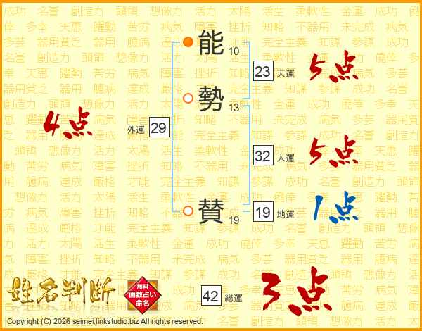 能勢賛さんの総運は42画の3点!