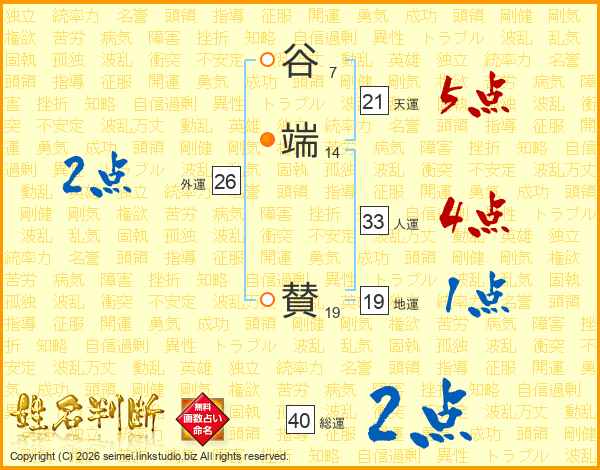 谷端賛さんの総運は40画の2点!