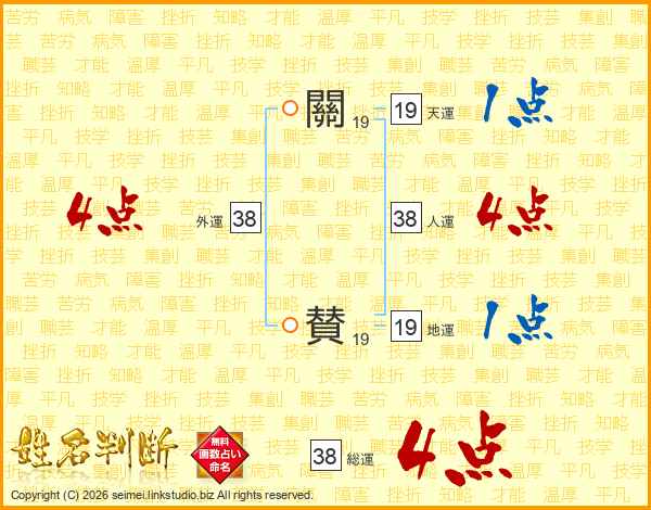 關賛さんの総運は38画の4点!