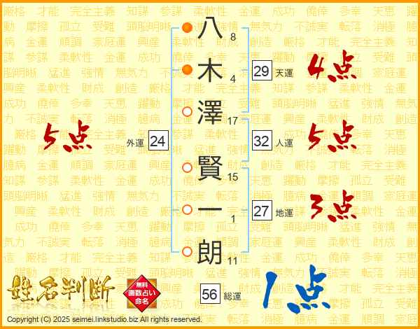 八木澤賢一朗さんの天運は29画の4点!