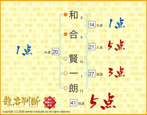 和合賢一朗さんの総運は41画の5点!