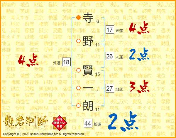 寺野賢一朗さんの総運は44画の2点!