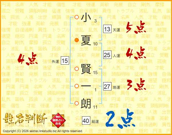 小夏賢一朗さんの総運は40画の2点!