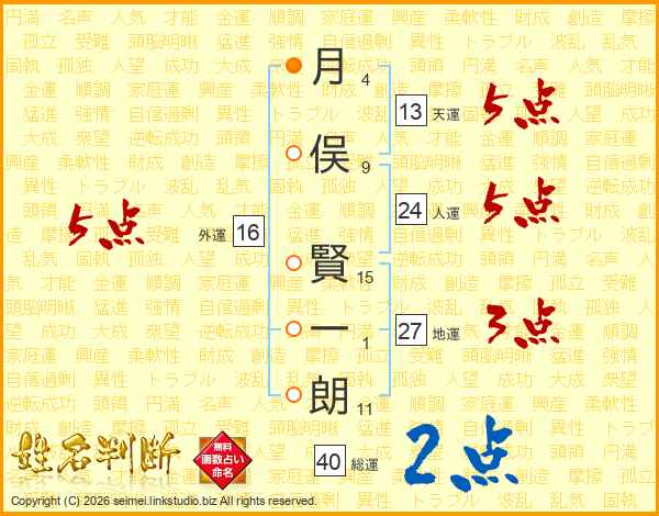 月俣賢一朗さんの人運は24画の5点!