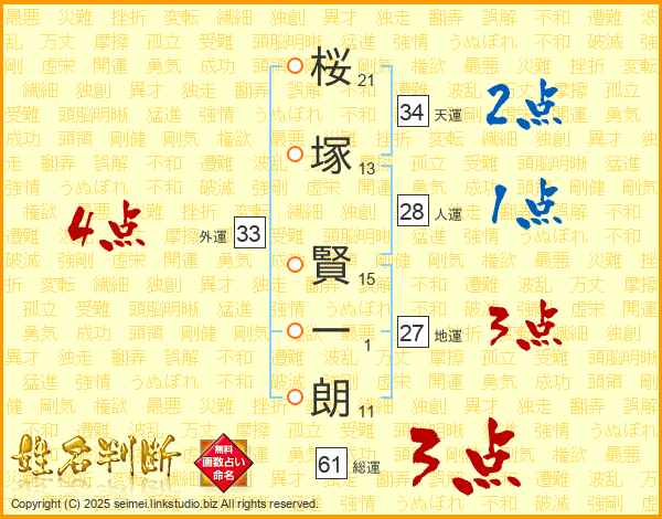 桜塚賢一朗さんの外運は33画の4点!