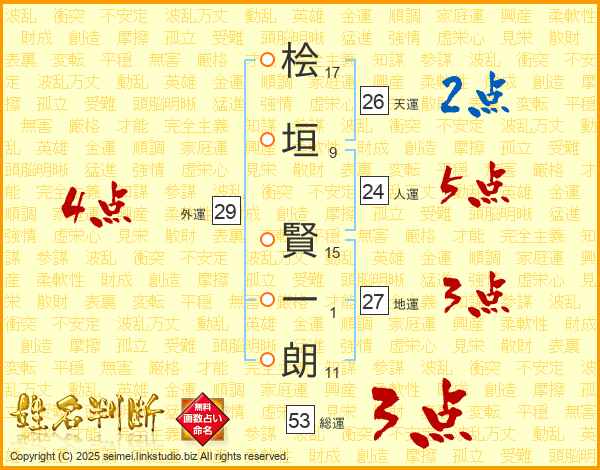 桧垣賢一朗さんの天運は26画の2点!