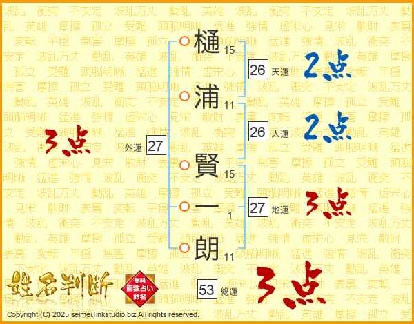樋浦賢一朗さんの天運は26画の2点!