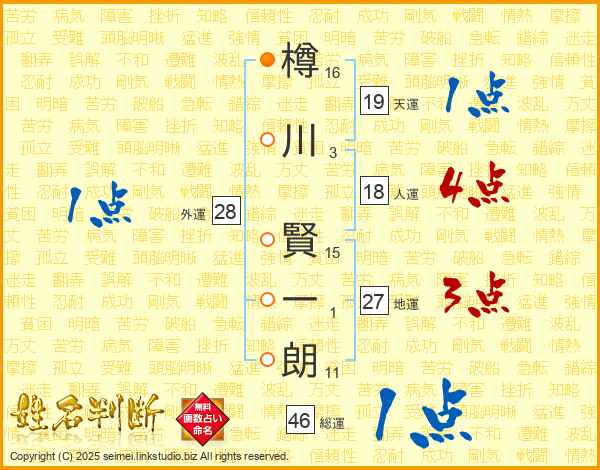樽川賢一朗さんの総運は46画の1点!