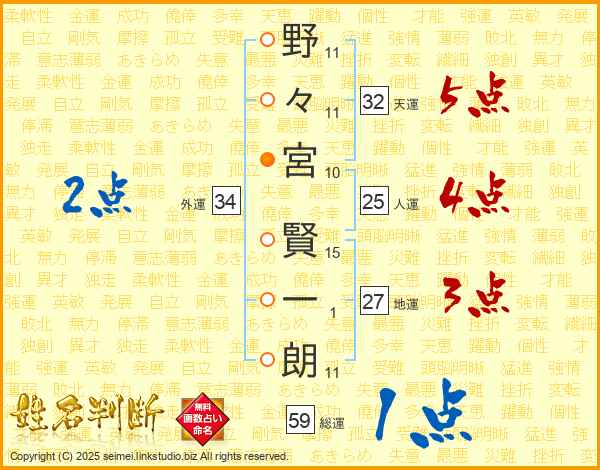 野々宮賢一朗さんの総運は59画の1点!