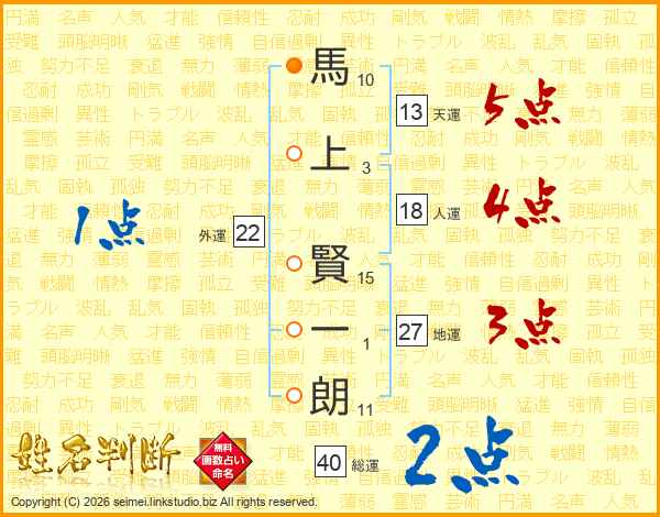 馬上賢一朗さんの総運は40画の2点!