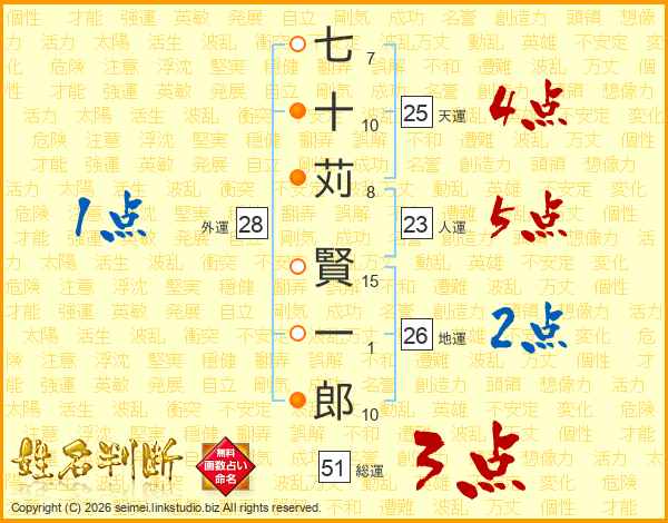 七十苅賢一郎さんの総運は51画の3点!