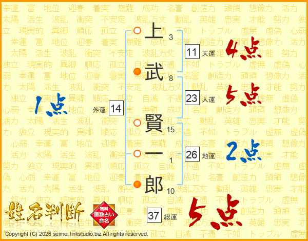 上武賢一郎さんの総運は37画の5点!