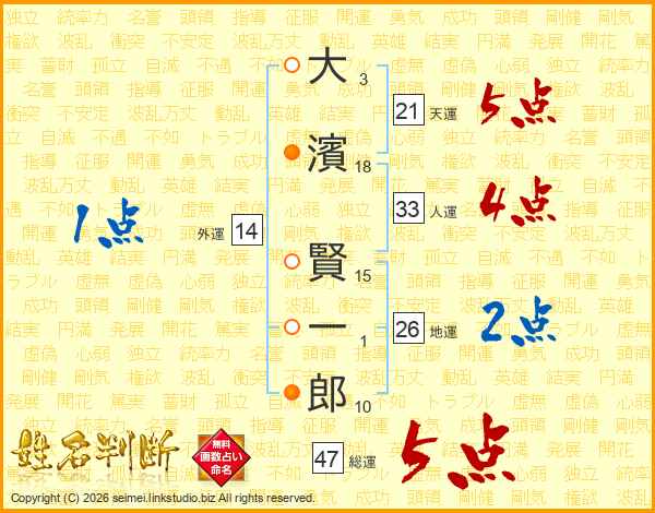 大濱賢一郎さんの総運は47画の5点!