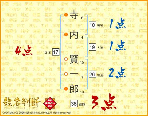 寺内賢一郎さんの地運は26画の2点!