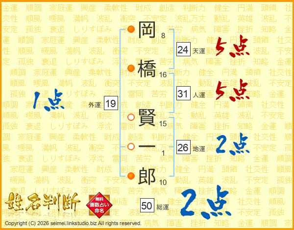 岡橋賢一郎さんの人運は31画の5点!