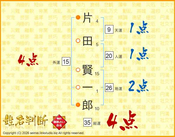 片田賢一郎さんの地運は26画の2点!
