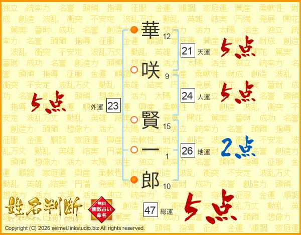 華咲賢一郎さんの総運は47画の5点!