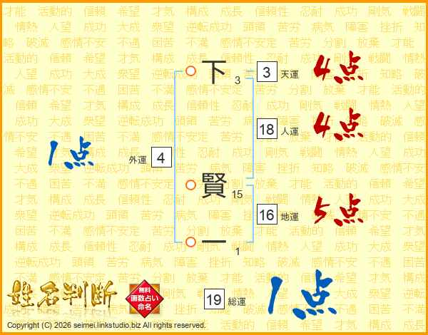 下賢一さんの総運は19画の1点!