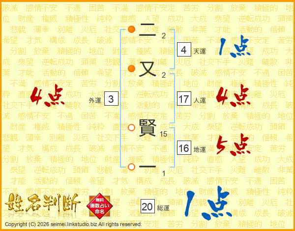 二又賢一さんの人運は17画の4点!