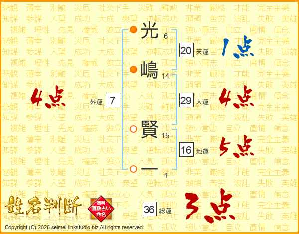 光嶋賢一さんの総運は36画の3点!