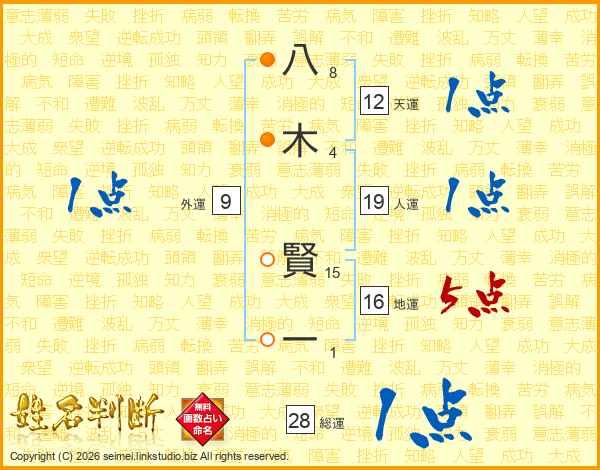 八木賢一さんの人運は19画の1点!