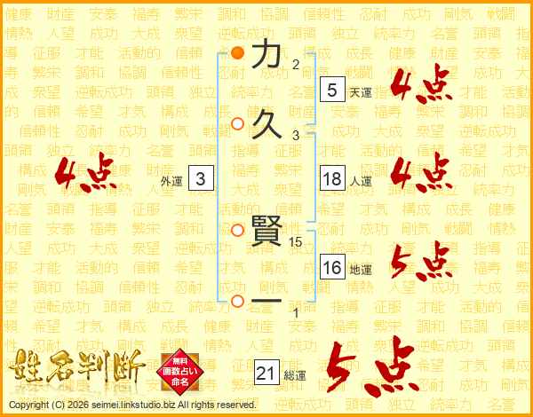 力久賢一さんの総運は21画の5点!