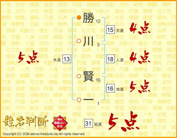 勝川賢一さんの総運は31画の5点!
