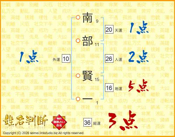 南部賢一さんの人運は26画の2点!