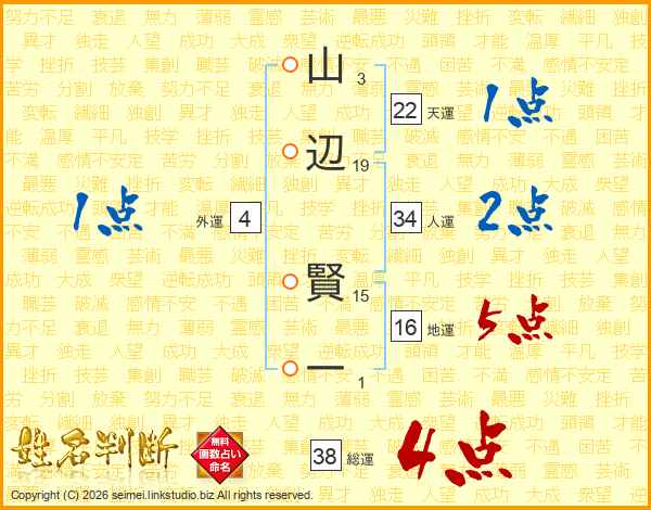 山辺賢一さんの総運は38画の4点!