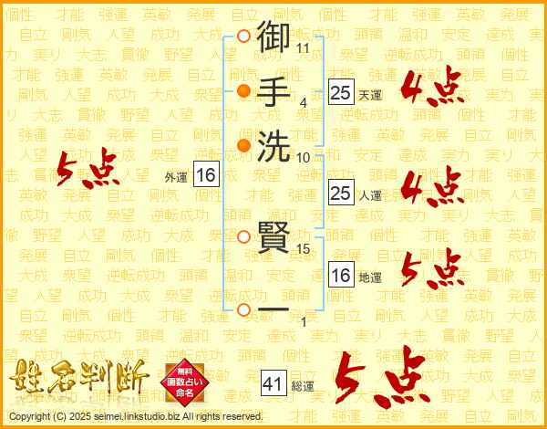 御手洗賢一さんの総運は41画の5点!