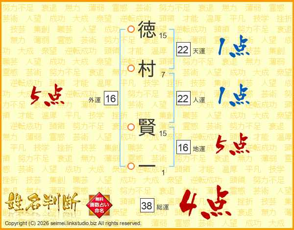 徳村賢一さんの総運は38画の4点!