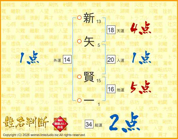 新矢賢一さんの外運は14画の1点!