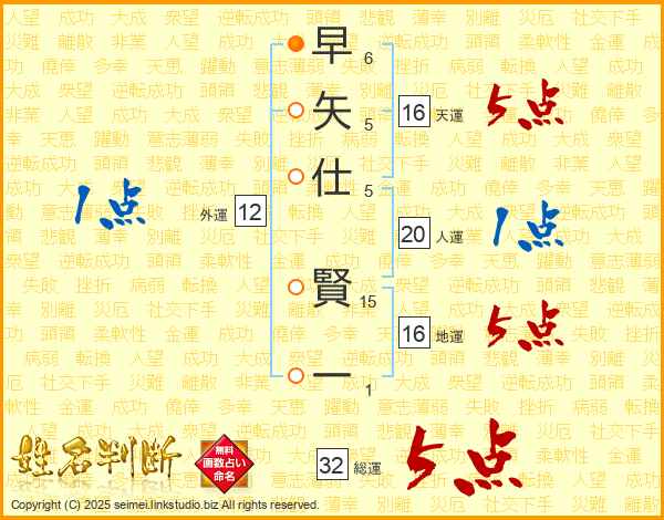 早(6画)矢(5画)仕(5画) 賢(15画)一(1画)