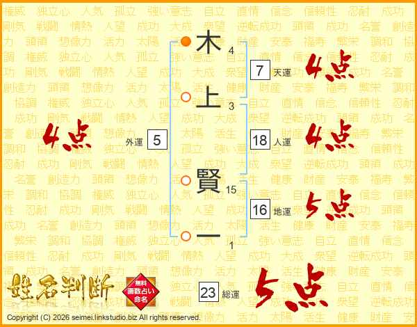 木上賢一さんの総運は23画の5点!