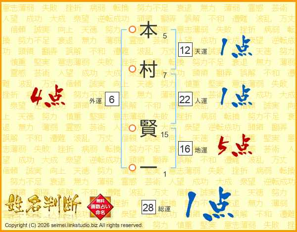 本村賢一さんの人運は22画の1点!