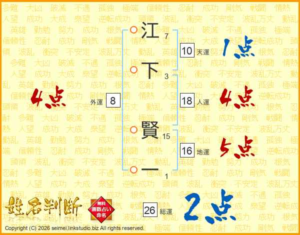 江下賢一さんの総運は26画の2点!