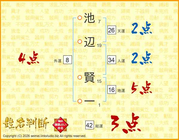池辺賢一さんの天運は26画の2点!