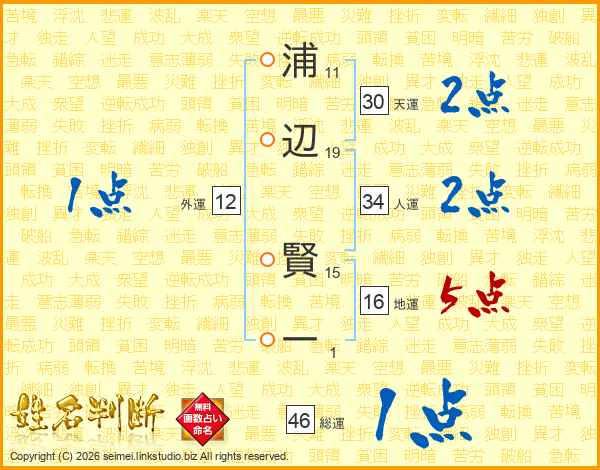 浦辺賢一さんの総運は46画の1点!
