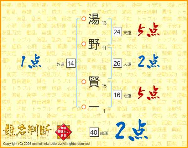 湯野賢一さんの総運は40画の2点!
