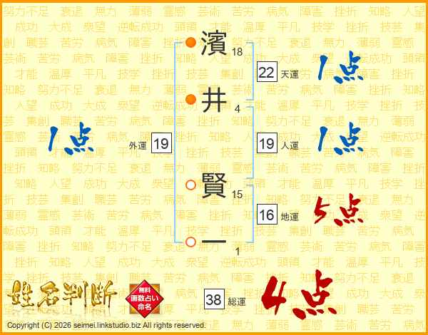 濱井賢一さんの総運は38画の4点!